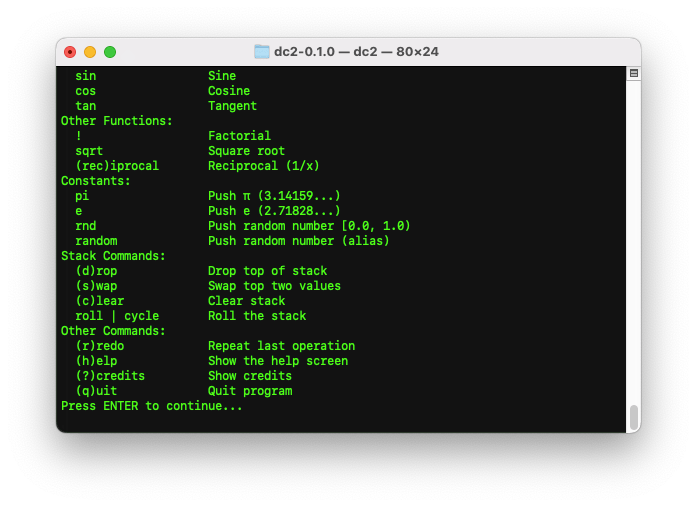 Since a few weeks we have a new RPN calculator for the macOS and Linux Terminal, initially called dc2