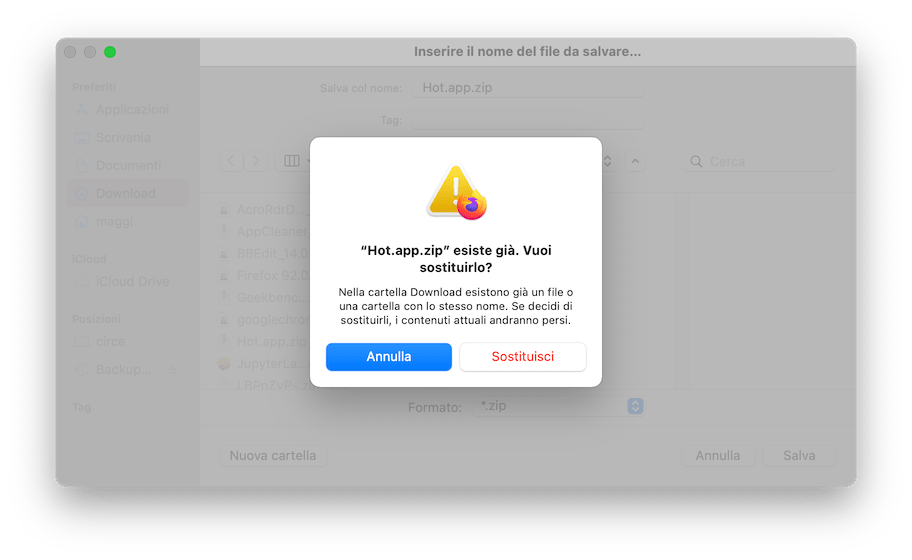 Primo esempio sono queste finestre di dialogo, nelle quali non si capisce perché il testo di uno dei pulsanti è in rosso o perché due azioni tutto sommato molto simili (perché potenzialmente pericolose per i propri file) hanno delle selezioni di default diverse.